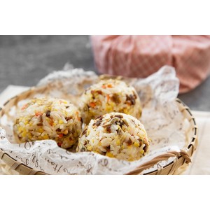 주먹밥 위에 계란 지단이나 슬라이스 치즈를 올려 전자레인지에 살짝 돌려보세요! 🍳