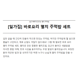 ✅ 밥만 있으면 뚝딱! 3분 완성, 일가집 멸치주먹밥의 마법