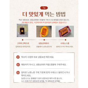 ✅ 매콤달콤 양념: 한국인이 가장 좋아하는 매콤하면서도 달콤한 양념이 떡과 어우러져 중독성 있는 맛을 선사!!!