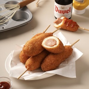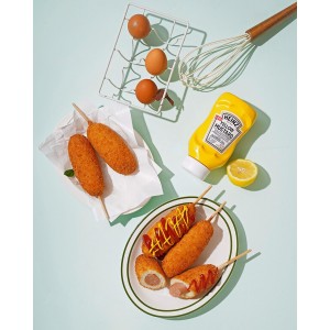 케첩이나 머스터드 소스를 뿌려 드시면 더욱 맛있습니다.