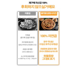 해동 후 프라이팬이나 에어프라이어에 노릇하게 구워주세요! 대창에서 나오는 고소한 기름에 떡사리나 마늘, 양파를 함께 구우면 풍미가 폭발합니다. 매콤한 비빔면과 함께 돌돌 말아 드시거나, 대파 김치를 곁들이면 느끼함 없이 무한정 들어가는 마법을 경험하실 수 있습니다!