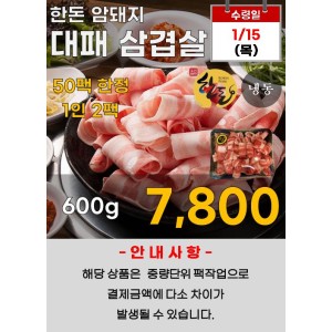 한돈 암돼지 대패 삼겹살 600g