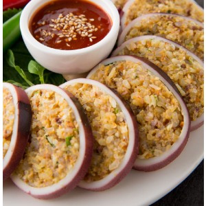냉동상태의 순대를 살짝 해동한 뒤, 계란물을 살짝 입혀 프라이팬에 노릇노릇하게 구워주시면
